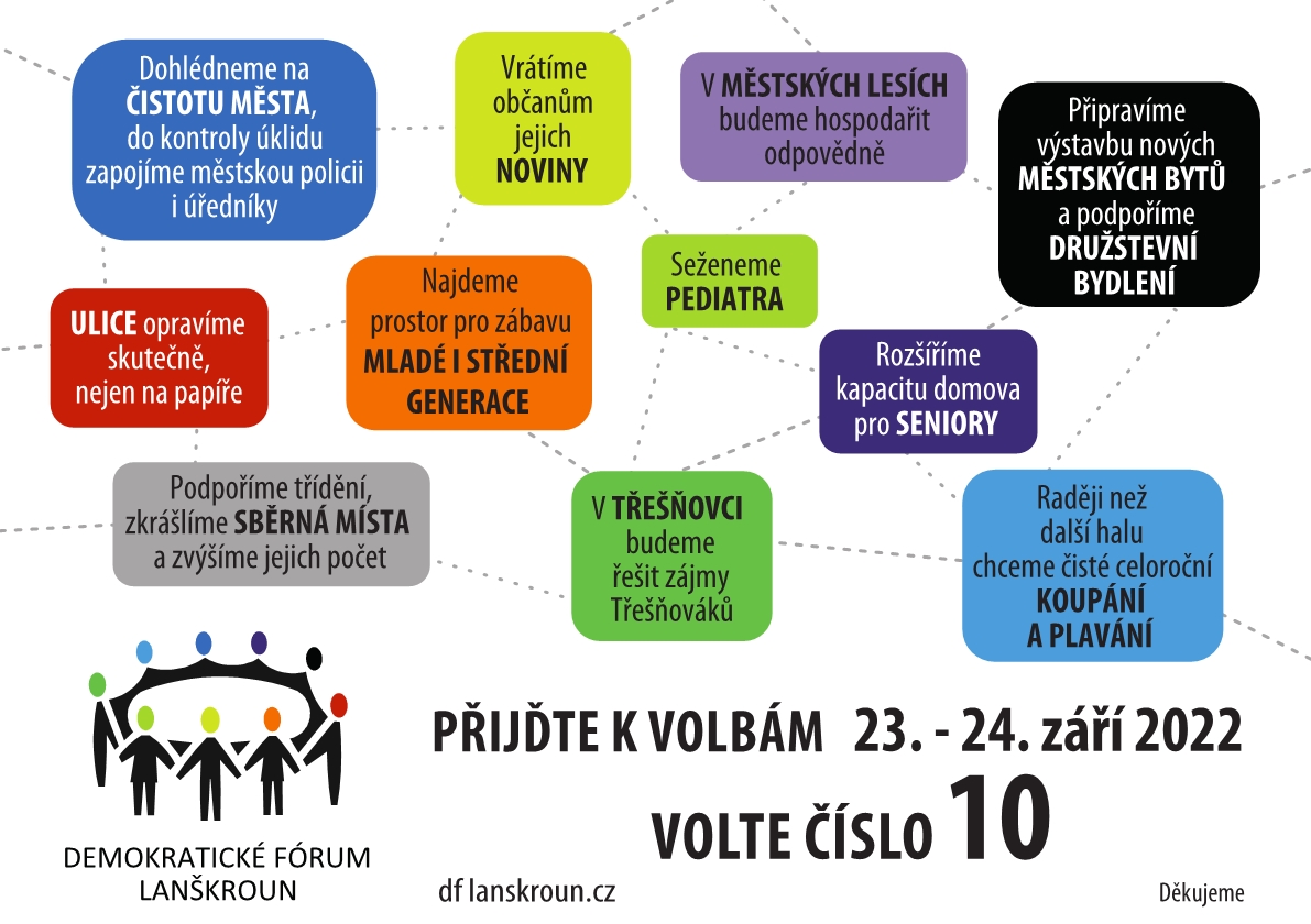 Vítáme Vás na stránkách našeho fóra. Jsme parta lidí, kteří mají Lanškroun v ❤️. Chceme být Vašimi zastupiteli a chceme pro Vás odvádět tu nejlepší práci ve vedení města. Jdeme s kůží na trh a nabízíme Vám naše zkušenosti, kreativitu, nápady a chuť pro naše město pracovat. ![]()